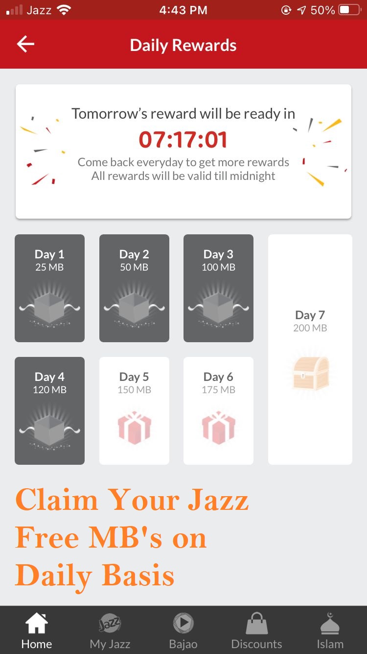 Luckily Mobilink allow their users to use free MBs up to 250 MB on daily basis, their are 2 different ways from which you can claim jazz free internet MBs by code or by using their jazz world application, its application are available on both platforms, Google Store is for android users and App Store is for iOS users.